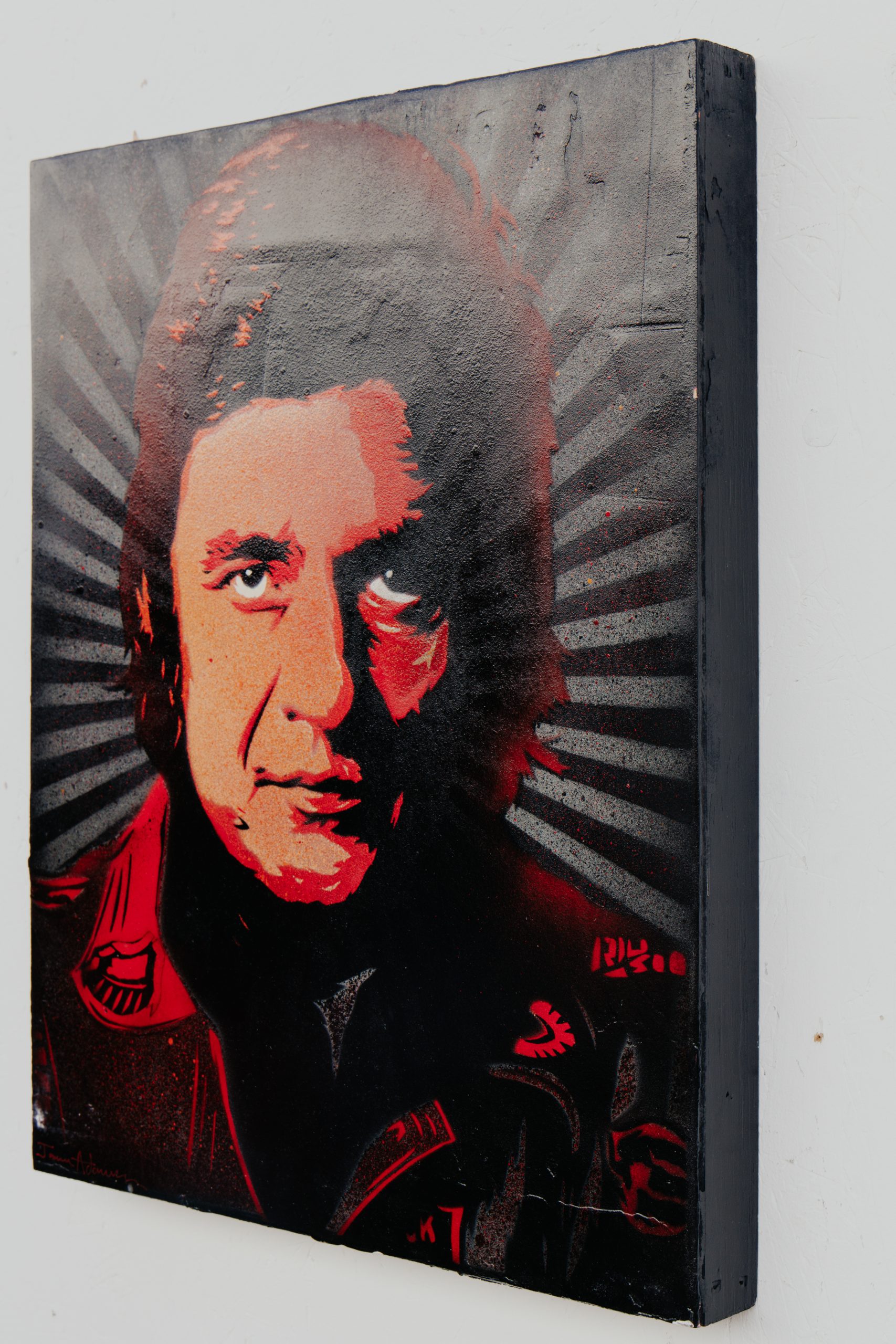 Original stencil art created with acrylic and spray on a heavy wood panel measuring 16×20″. This is ready for your wall!