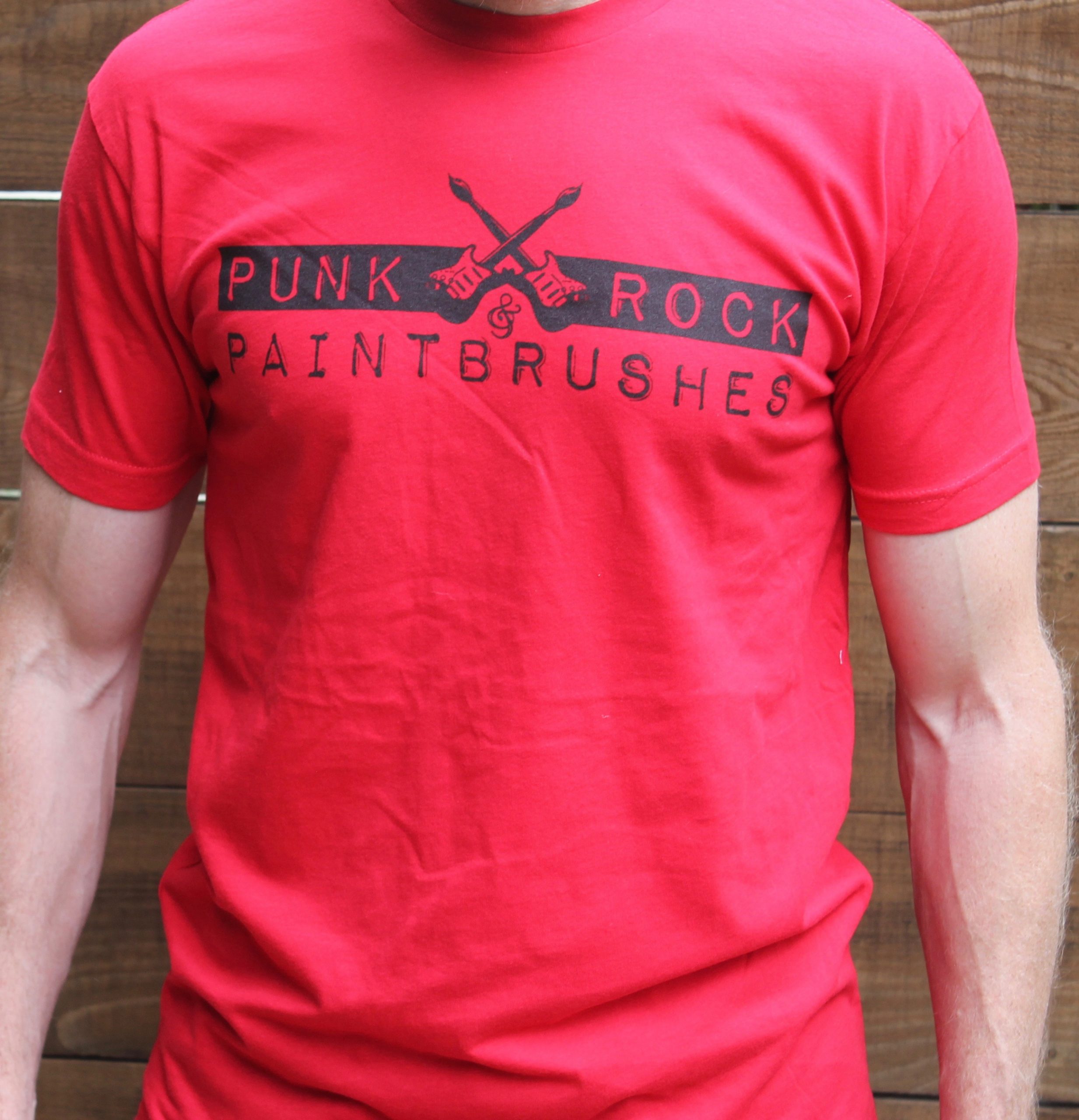 The classic “PUNK ROCK & PAINTBRUSHES” black logo on this very comfortable cotton stretch Next Level red tee.