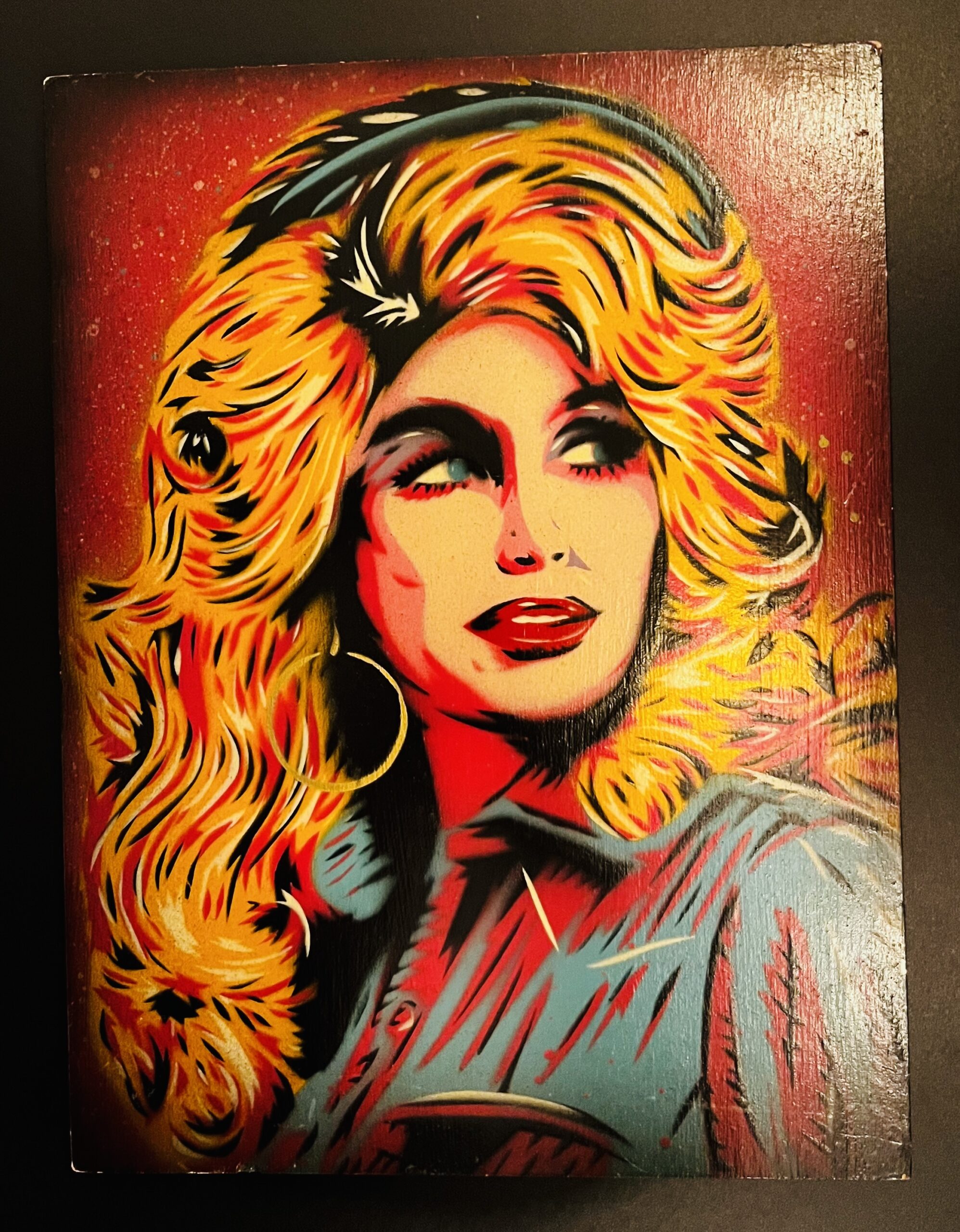 This original art is painted by Jason Adams with stencil, aerosol latex on wood. This measures 10×12″