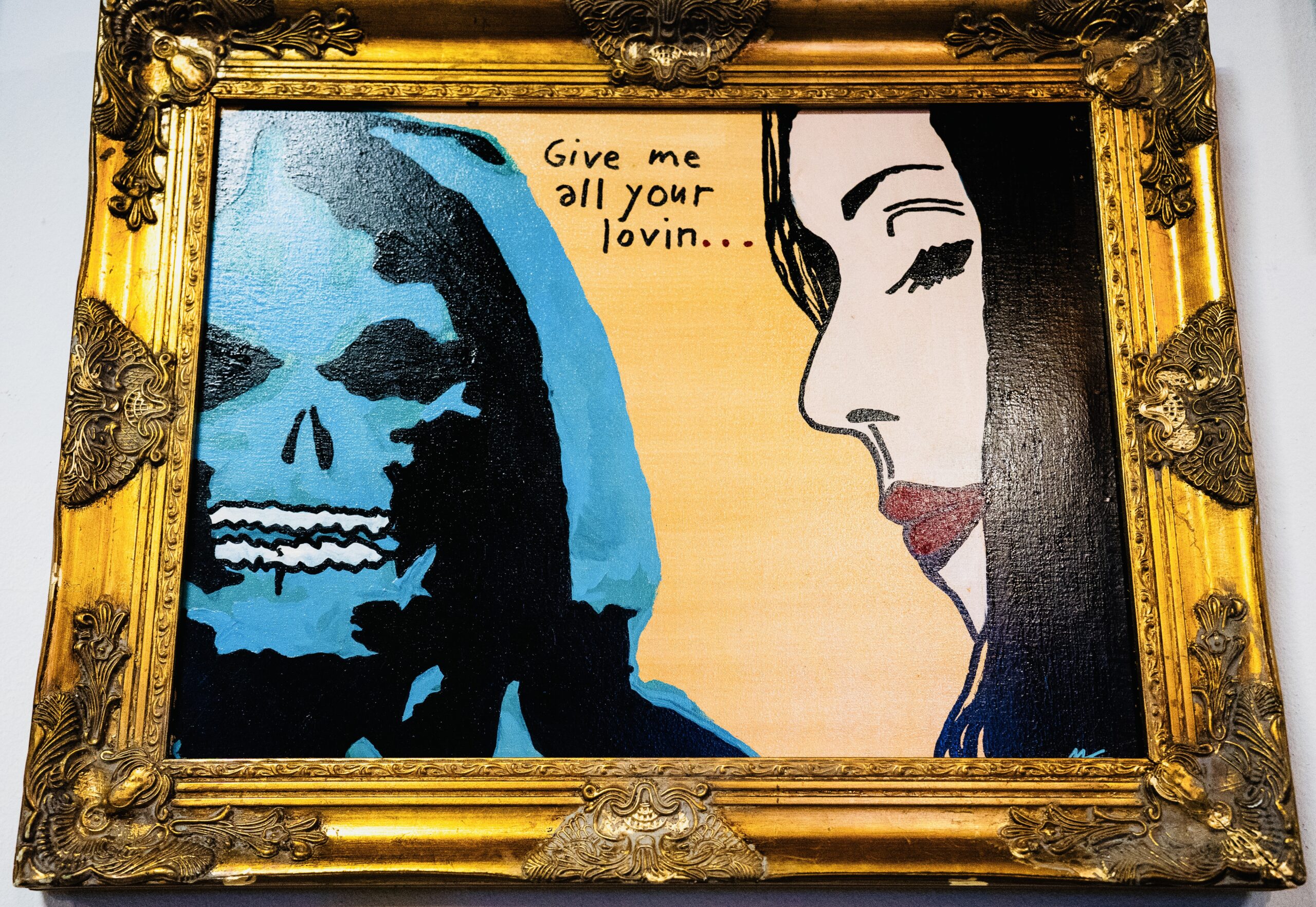 This original art piece is oil on canvas with gold metallic rustic frame.