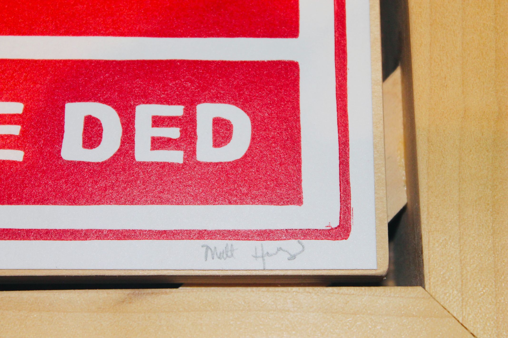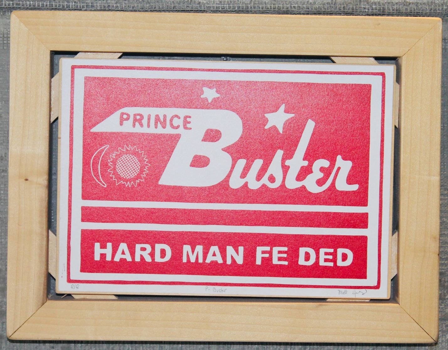 LINO PRINT IN GLASS WITH HANDMADE FRAME