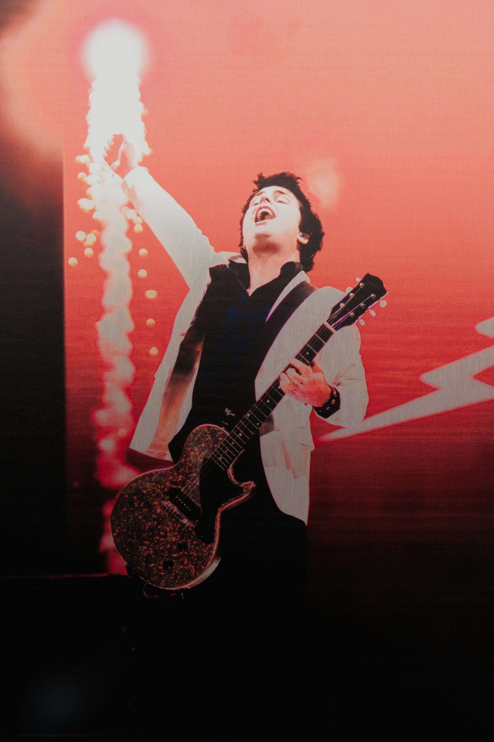 This photo is shot during the 2021 “Hella Mega Tour” in 2021 of Billie Joe Armstrong of Green Day. This is printed as a 24×18″ on metallic shimmer aluminum.